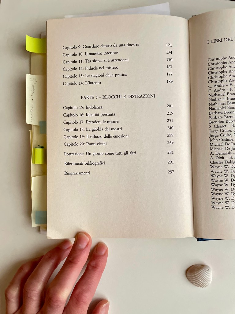 Gli spunti sono tanti e la riflessione può muoversi su più livelli. Ecco perché ho letto questo libro più volte e ancora continuo a tenerlo sul comodino. Ogni rilettura chiarisce, mi sostiene e mi motiva nella pratica. Tra le sue pagine trovo quel sostegno che puoi trovare in un amica, quella che nel momento giusto ti rivela quel qualcosa di te che non funziona ma che tu da sola non eri ancora in grado di vedere. Questo libro per me e’ quell’amica che nel momento di dubbio ti regala le parole di cui hai bisogno per capire quale direzione prendere e ripartire.